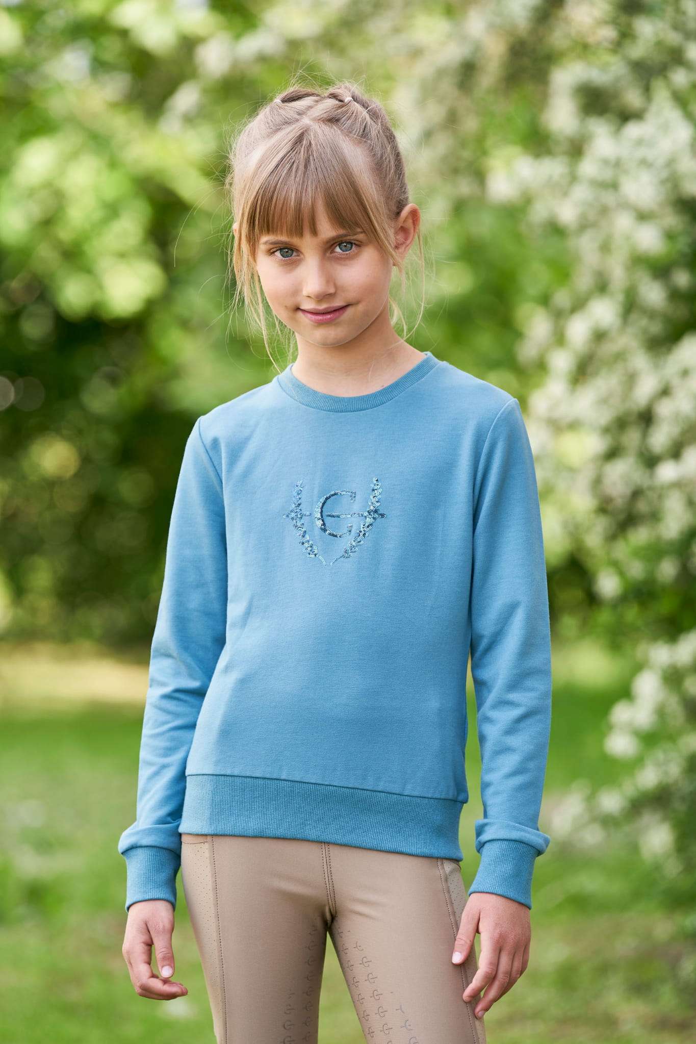Bluza jeździecka dziecięca Covalliero Junior Aplikacja w kolorze deep water – modna bluza jeździecka dla dzieci z cekinowym logo