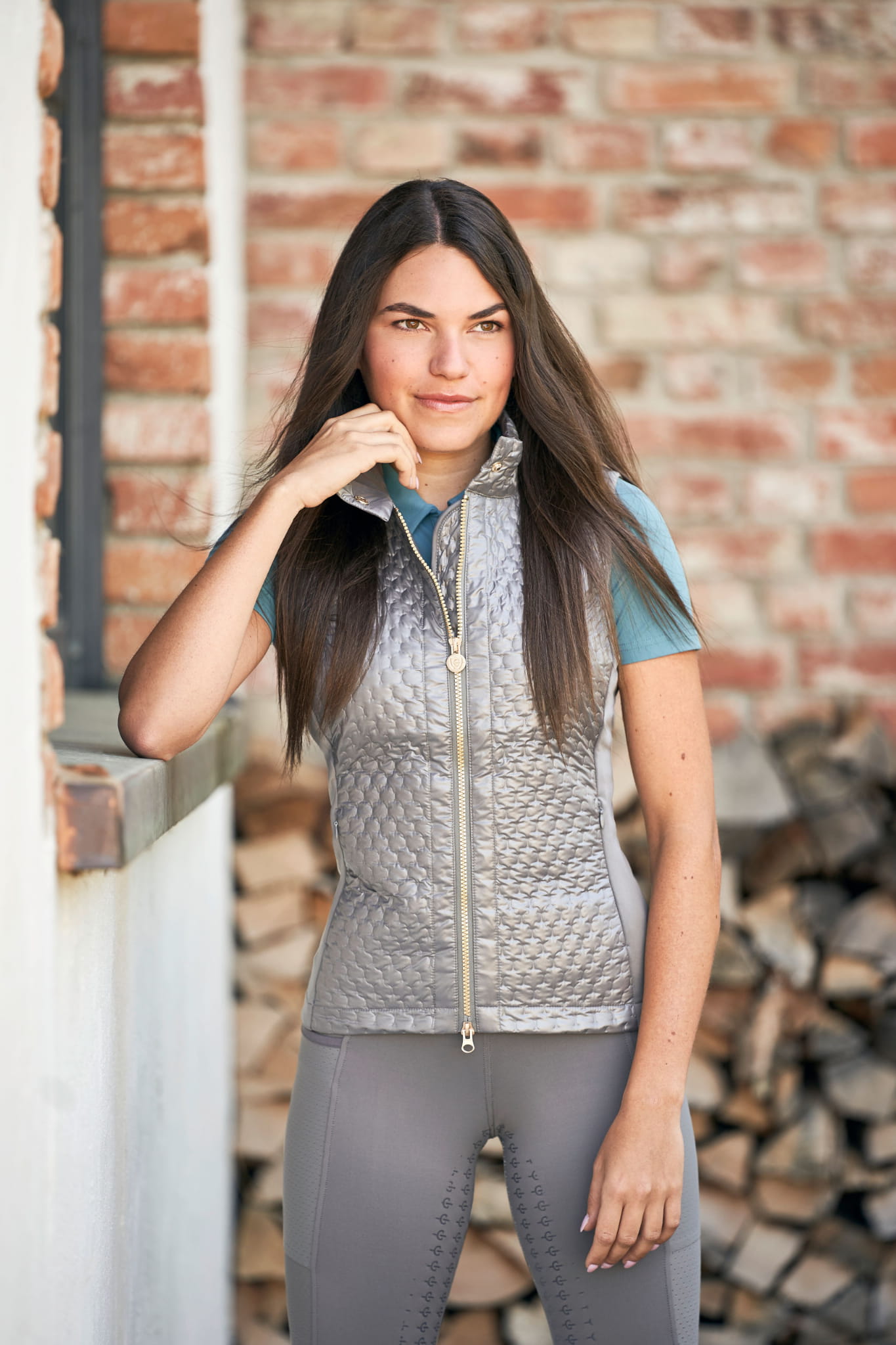Lekka kamizelka jeździecka Covalliero Combi łączy elegancję z najwyższym komfortem użytkowania. Wykonana z połączenia elastycznego materiału niekrępującego ruchów oraz modnie pikowanej, satynowej tkaniny, doskonale sprawdzi się zarówno w siodle, jak i podczas codziennych aktywności w stajni.