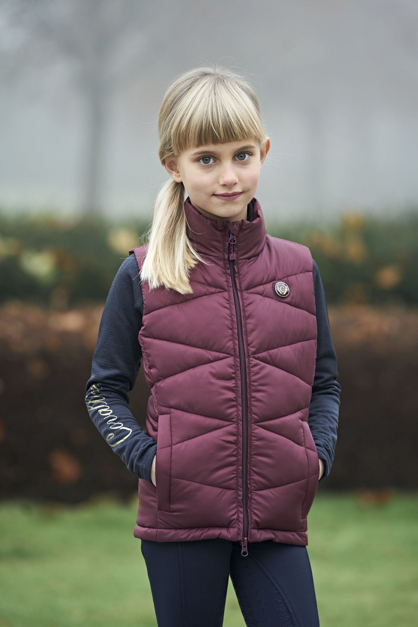 Covalliero Junior Merlot to ciepła, pikowana kamizelka dla dziewczynek, które cenią wygodę i modny wygląd podczas jazdy konnej oraz codziennych zajęć w stajni. Jest lekka, komfortowa i doskonale chroni przed chłodem.