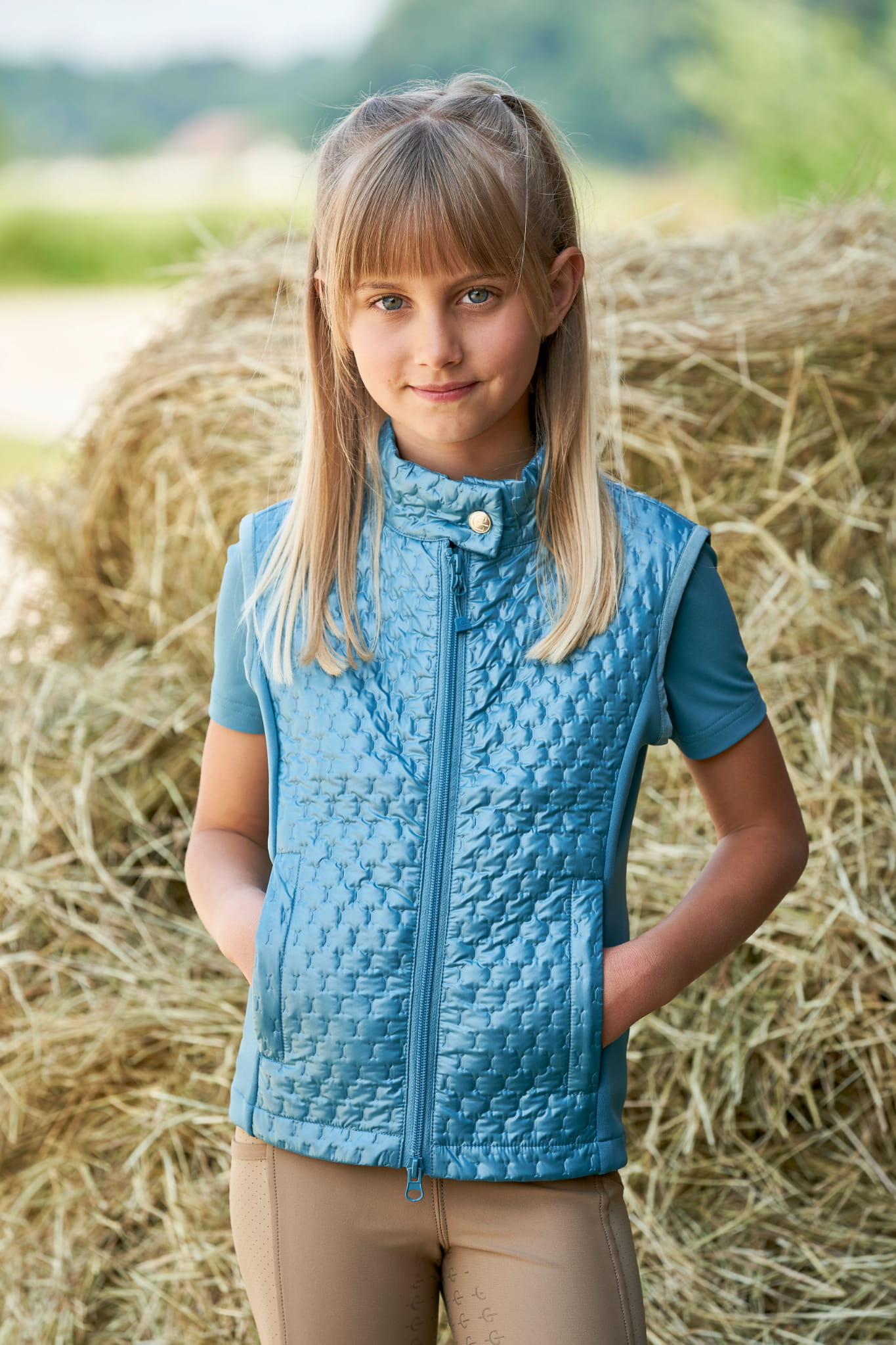 Kamizelka dziecięca zapinana na dwukierunkowy zamek, który zwiększa funkcjonalność, pozwalając na wygodne użytkowanie także w siodle. Kamizelka wyposażona jest w kieszenie zapinane na zamek, dzięki czemu wszystkie drobiazgi pozostają bezpieczne podczas ruchu.