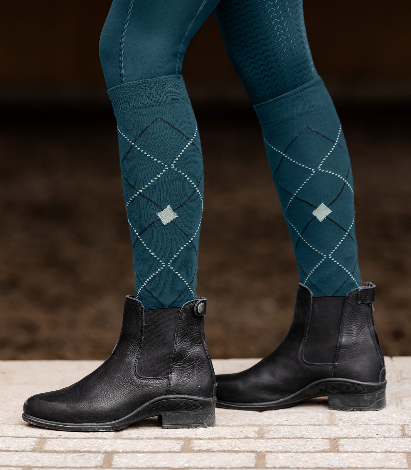 ELT Argyle to klasyczne podkolanówki jeździeckie w nowoczesnym wzorze w romby. Wykonane z oddychającego materiału, zapewniają komfort noszenia przez cały dzień. Dzięki różnym strefom dzianiny, gwarantują optymalne dopasowanie i wygodę zarówno w oficerkach, jak i sztybletach.
