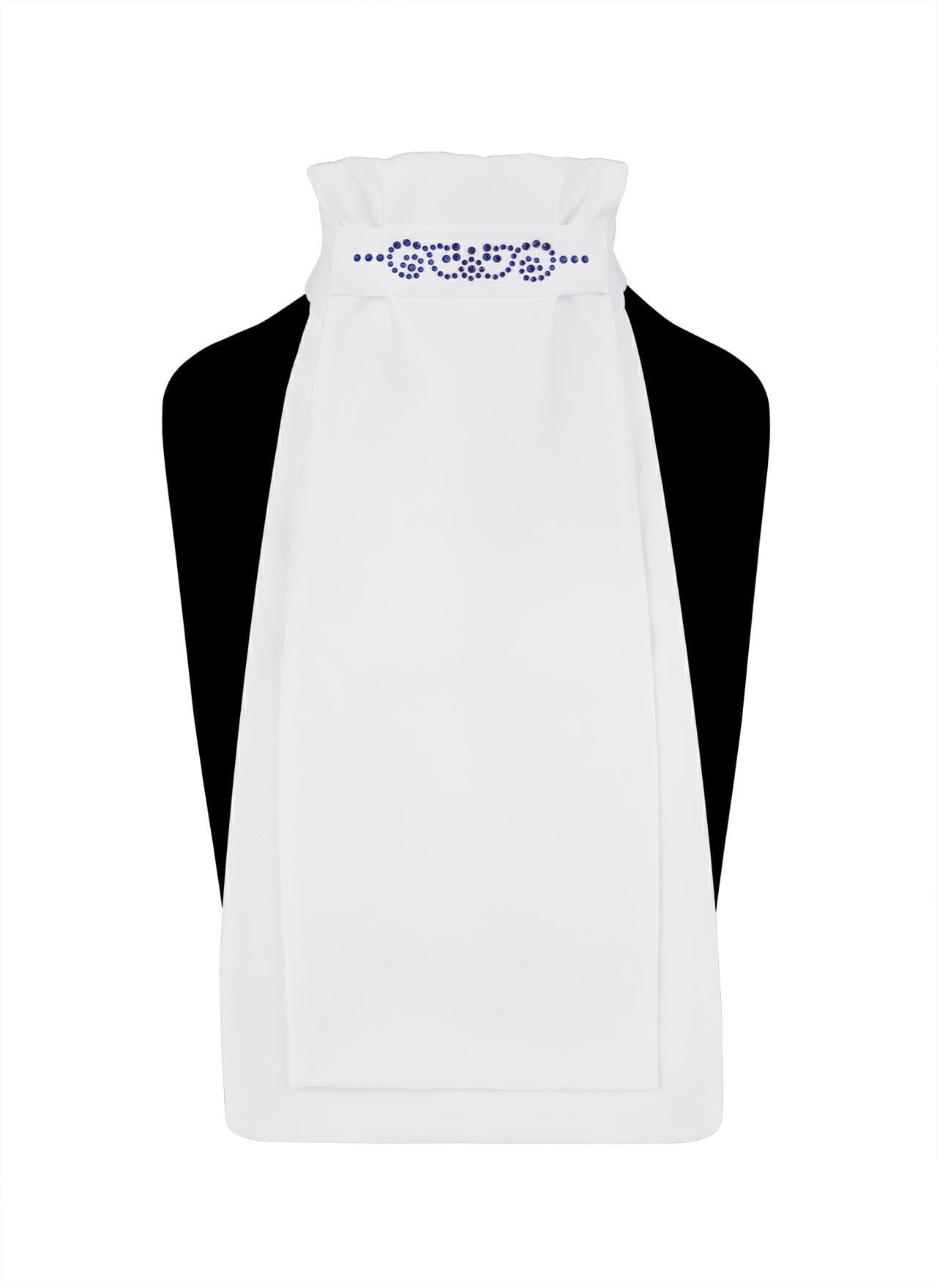 Plastron jeździecki Fair Play Andrea Chic w kolorze białym z granatowymi kryształkami – elegancki plastron dla wymagających