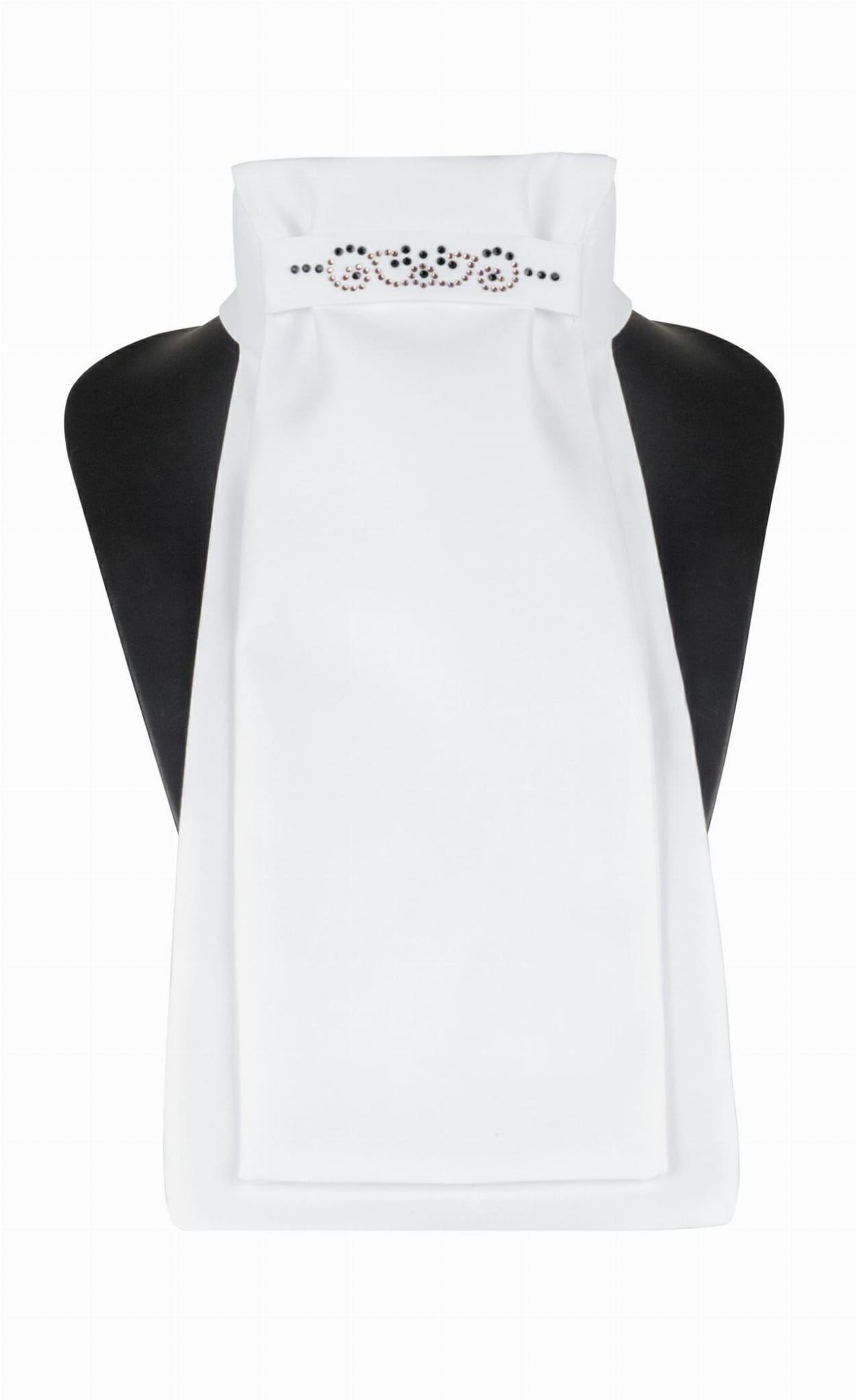 Plastron jeździecki Fair Play Andrea Chic w kolorze białym z kryształkami czarnymi i rosegold – elegancki plastron dla wymagających