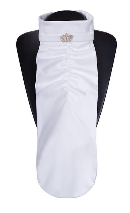 Elegancki plastron uszyty z tafty, ozdobiony koroną z kryształkami.