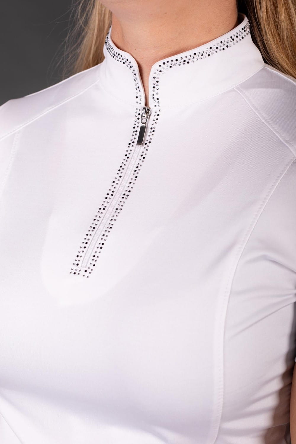 - Idealna bluzka na zawody, pokazy i inne oficjalne wydarzenia jeździeckie: Klasyka z nutą blasku, którą wyróżnisz się na każdej arenie.