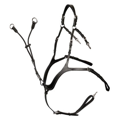- 5-punktowy lub 4-punktowy system mocowania: Możliwość przekształcenia napierśnika, usuwając mocowanie między przednimi nogami.