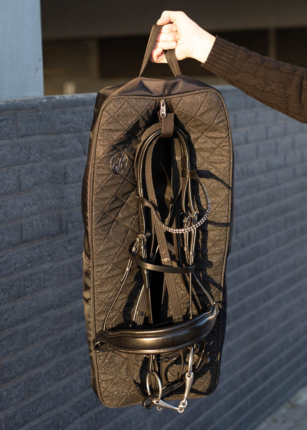 - luksusowa torba na ogłowie, wykonana z pięknej brokatowej tkaniny