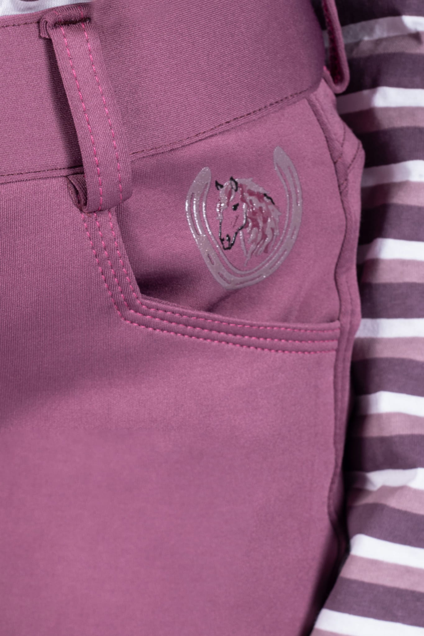 Bryczesy dziecięce HKM Junior Alva w kolorze dark lilac – komfort i funkcjonalność dla młodych jeźdźców