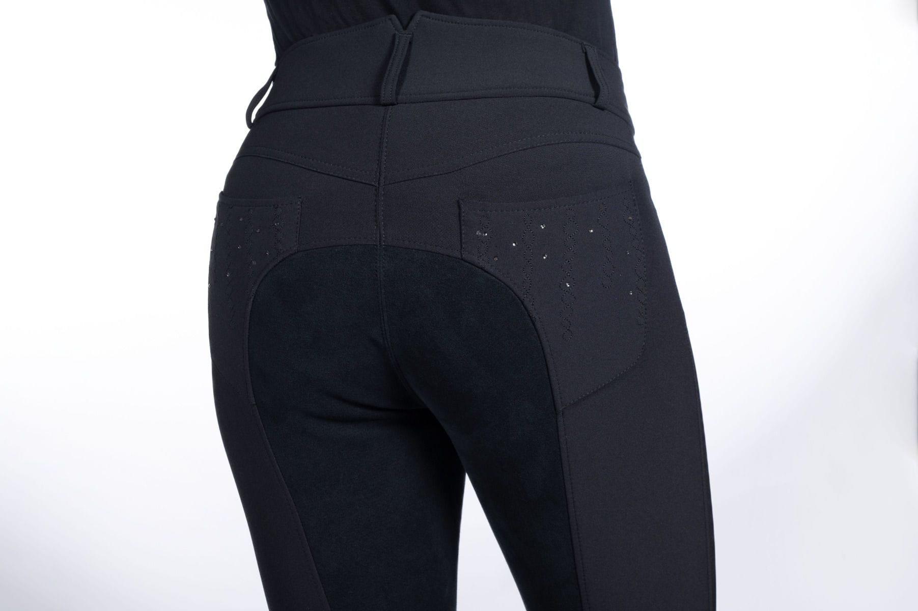 - Cztery kieszonki ozdobione kryształkami: Bryczesy z kryształkami nadają stylizacji wyjątkowego charakteru.