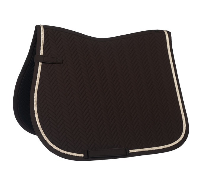 Wypełnienie z pianki i waty skutecznie tłumi wstrząsy, chroniąc grzbiet konia przed punktowym naciskiem. Czaprak posiada paski mocujące na rzep, dzięki którym pozostaje na swoim miejscu nawet podczas bardziej dynamicznej jazdy. Wykończenie ozdobnym sznureczkiem nadaje elegancki akcent i sprawia, że czaprak świetnie prezentuje się w komplecie z resztą wyposażenia.