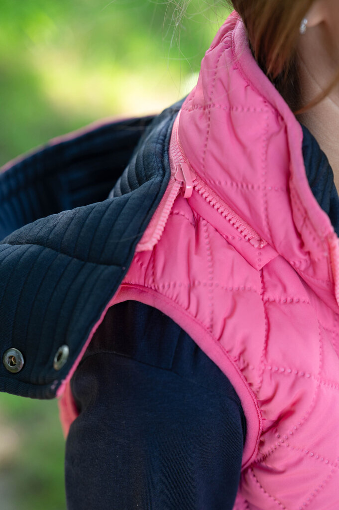 HKM kamizelka Junior MAUI dwustronna to funkcjonalna i stylowa kamizelka dziecięca jeździecka, idealna na chłodniejsze dni w stajni i na co dzień.