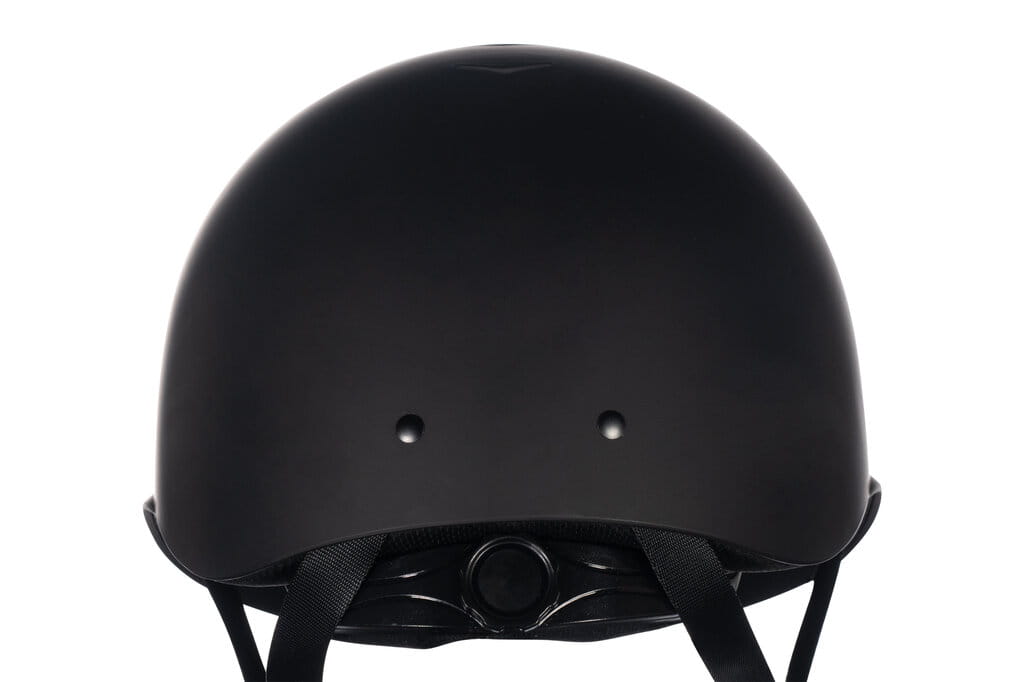 Regulacja za pomocą pokrętła z tyłu kasku – regulowany kask jeździecki pozwala na precyzyjne dopasowanie rozmiaru do obwodu głowy, zapewniając stabilność i komfort podczas jazdy.