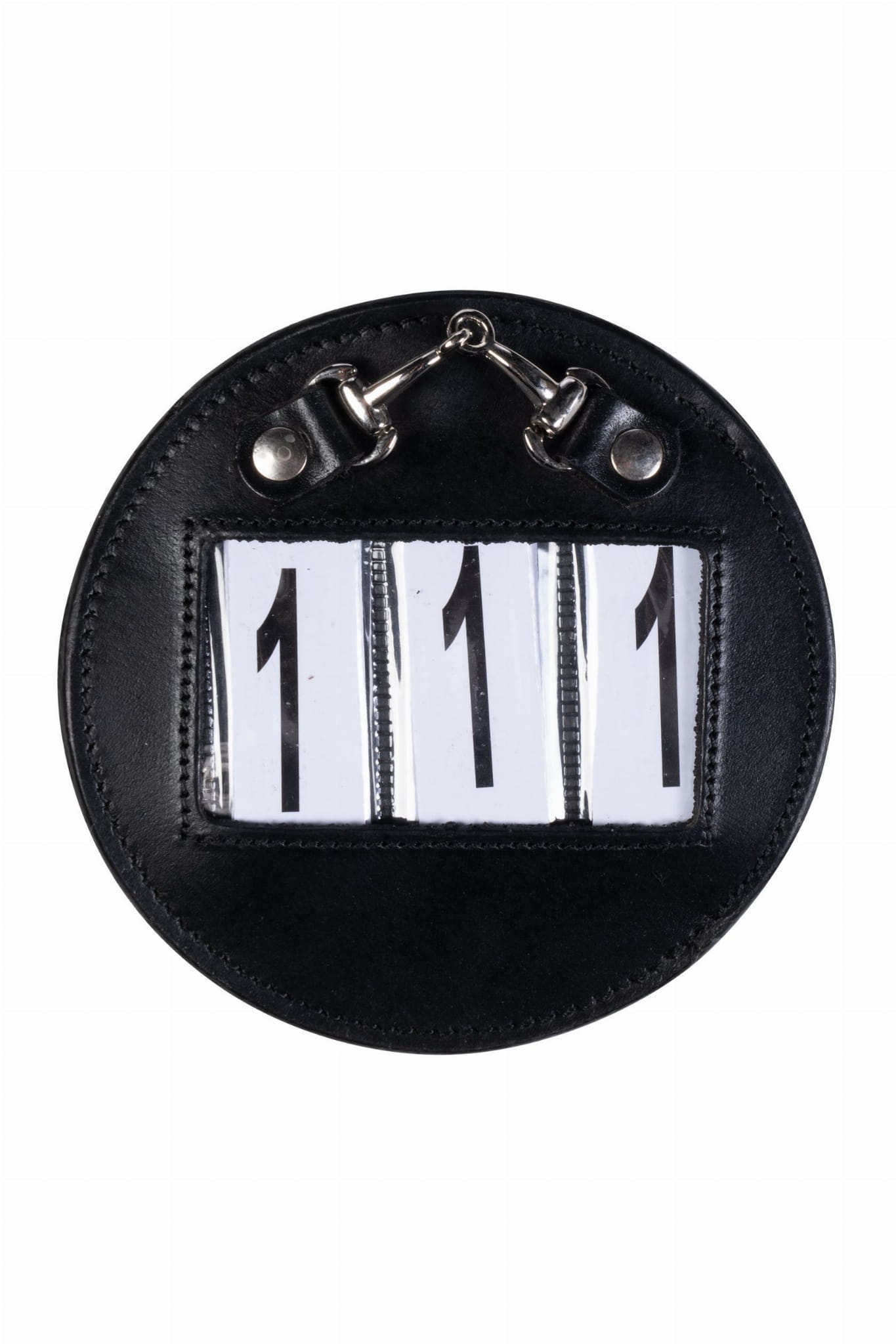 Numery startowe jeździeckie HKM Ida w kolorze black rund – skórzane numery startowe 3-cyfrowe z ozdobnym wędzidłem (2 sztuki)