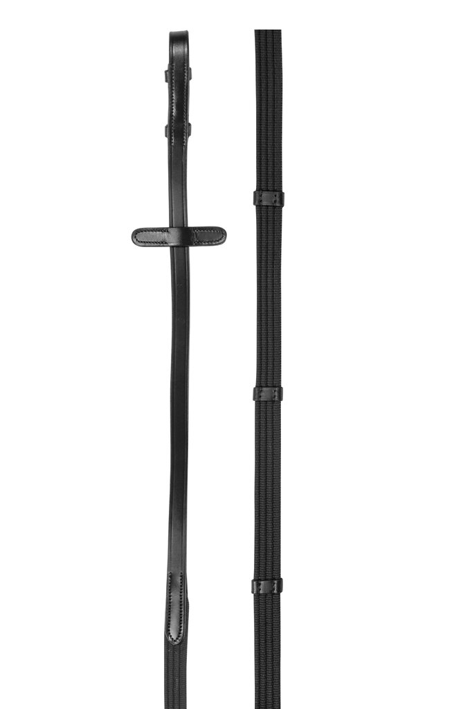 W zestawie znajdują się wodze parciane z ogranicznikami skórzanymi, które zapewniają pewny chwyt podczas jazdy.
