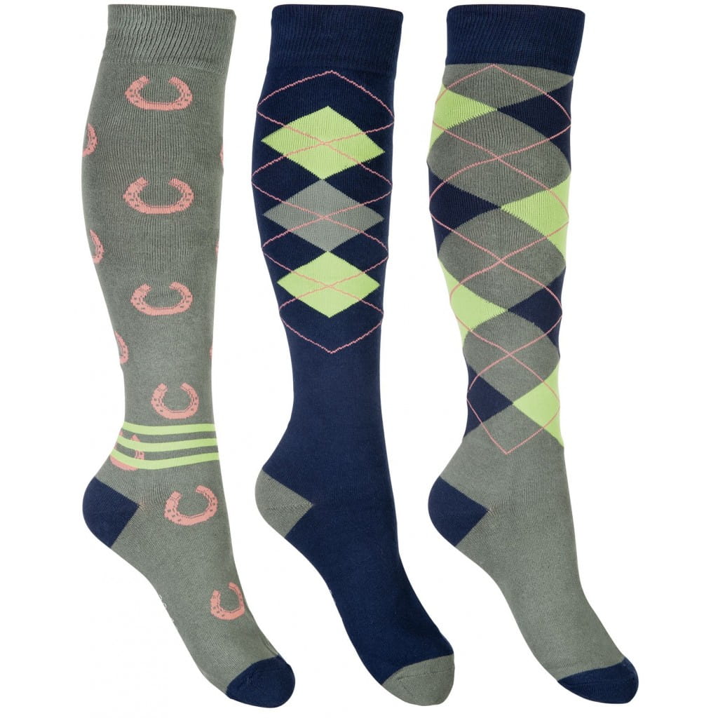 Podkolanówki jeździeckie HKM Cardiff 3szt w kolorze oliwkowym – styl i komfort na każdy dzień