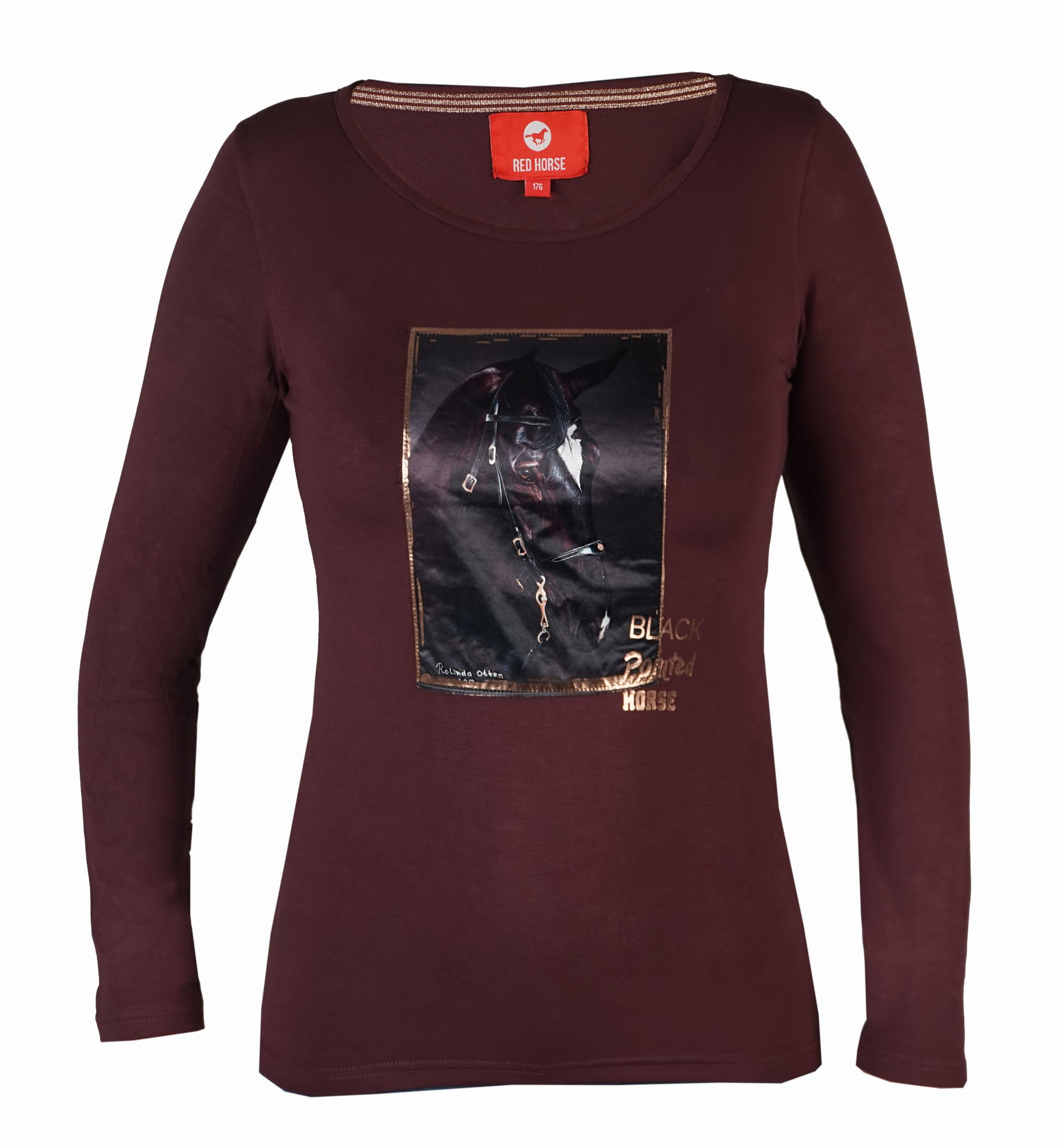 Bluzka jeździecka z długim rękawem Horka Grande w kolorze raisin – stylowa bluzka z haftowanym nadrukiem