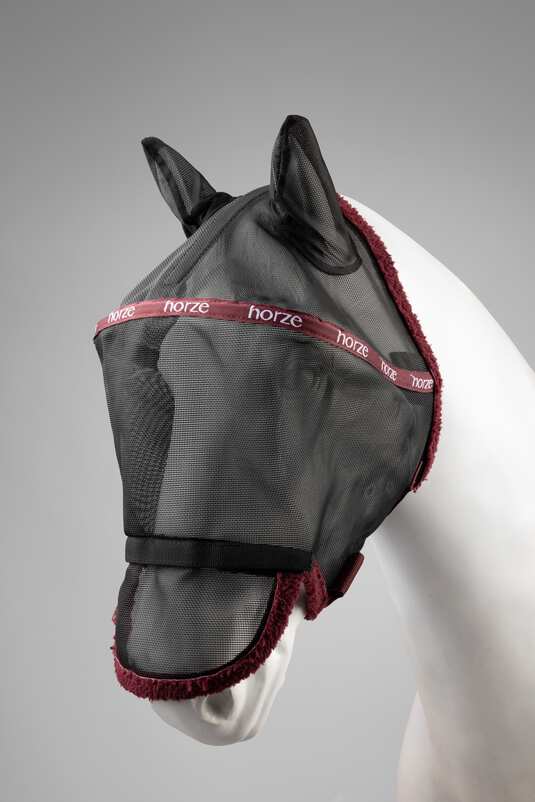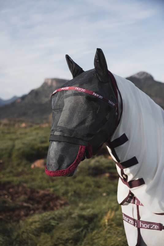 Maska przeciw owadom dla konia z usztywnieniem Horze Wire w kolorze windsor wine – skuteczna ochrona przed owadami i promieniami UV