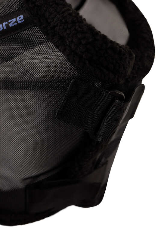 - Podszycie z miękkiego polaru na nachrapniku i potylicy – maska dla konia zapobiega obtarciom i zwiększa komfort użytkowania.