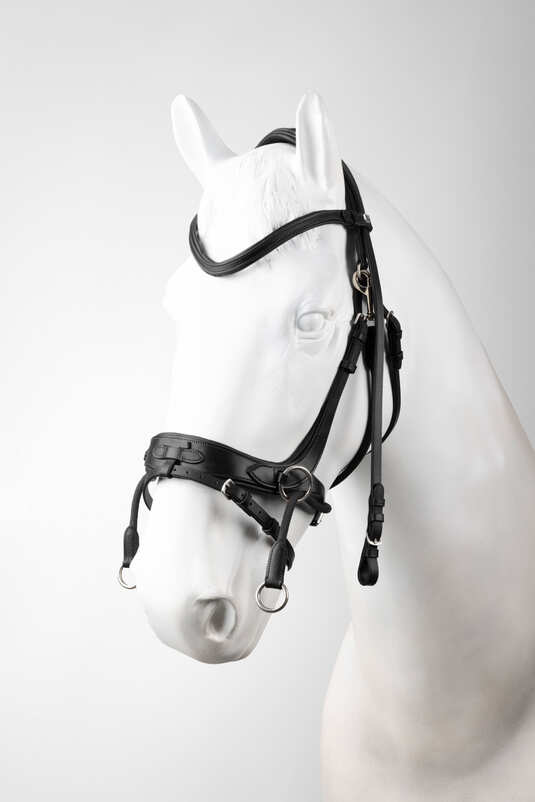 Ogłowie dla konia 2w1 Horze Montana w kolorze black – skórzane ogłowie z opcją jazdy bezwędzidłowej