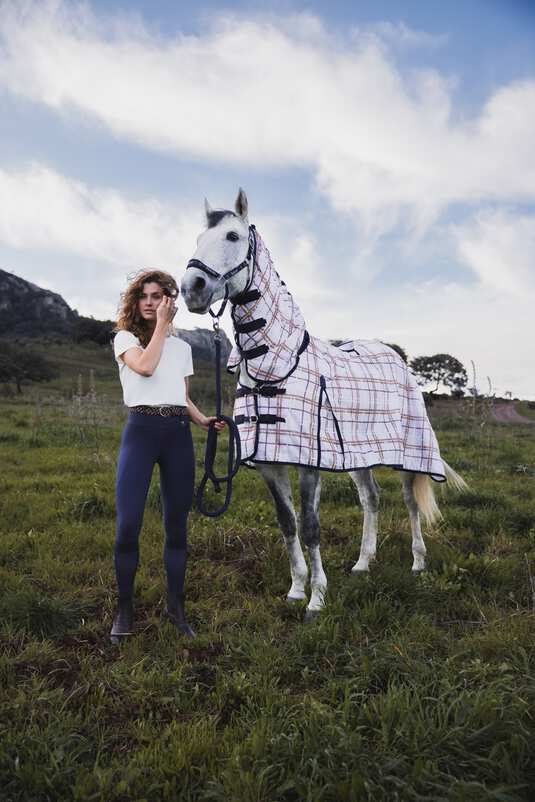 Pasek elastyczny do bryczesów Horze Liva w kolorze checks print navy – styl i wygoda każdego dnia