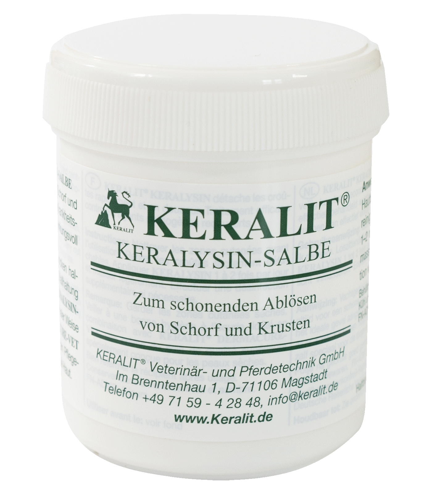 Keralit Keralysin to specjalistyczna maść na grudę, strupy oraz uporczywe zmiany skórne u koni, która delikatnie i skutecznie zmiękcza przylegające warstwy strupów, ułatwiając ich bezbolesne usunięcie. Dzięki swojej formule, produkt zapewnia szybsze i bardziej efektywne leczenie bez ryzyka podrażnień.