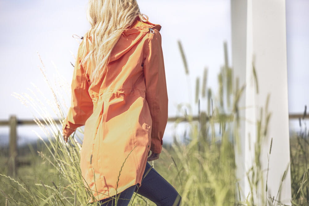 - Wykonany z elastycznego materiału płaszcz do jazdy konnej, który gwarantuje komfort noszenia i pełną swobodę ruchów w siodle oraz poza nim, niezależnie od warunków pogodowych.