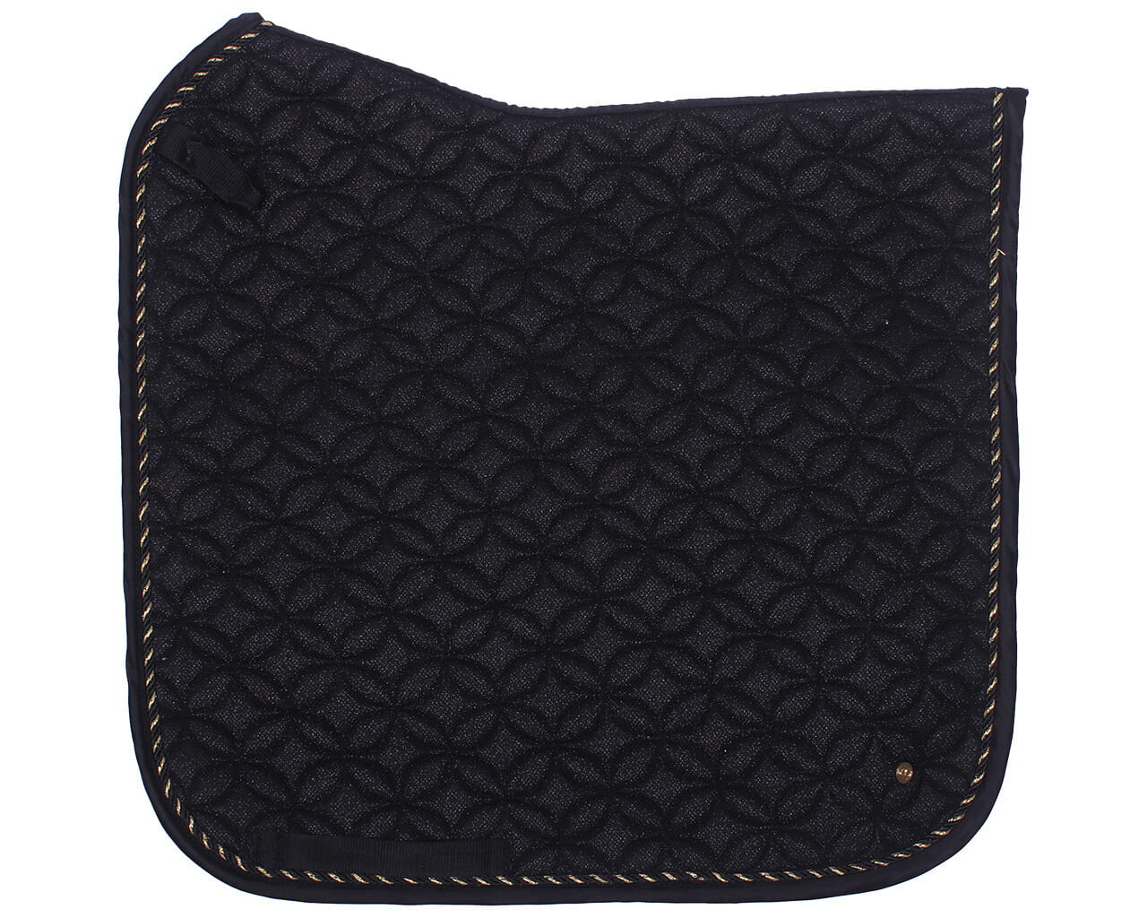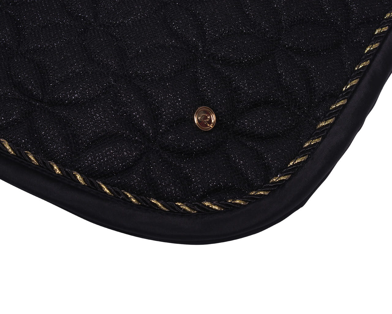 Ozdobny czaprak QHP Rio to idealny wybór dla jeźdźców pragnących dodać blasku i stylu do swojego wyposażenia. Wykonany z efektownej brokatowej siateczki, czaprak ten zapewnia nie tylko funkcjonalność, ale również wyjątkowy wygląd, który przyciąga wzrok podczas każdej jazdy konnej. Efektowny czaprak z brokatowej siateczki sprawi, że Twój koń będzie prezentował się niezwykle elegancko.