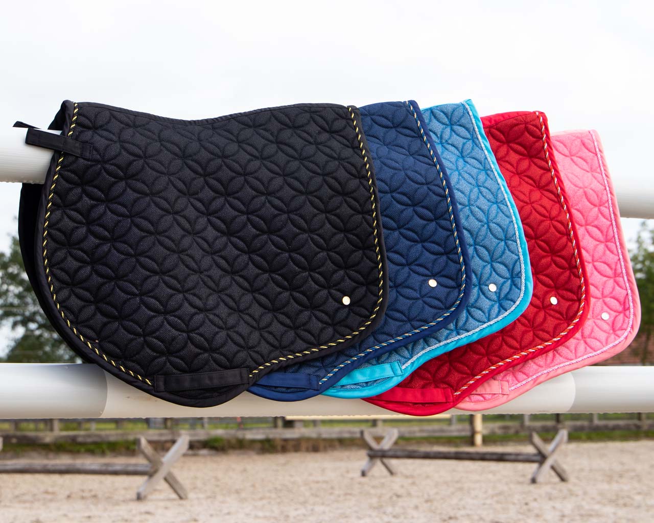 Czaprak QHP Rio to połączenie wysokiej jakości wykonania, efektownego designu i funkcjonalności. Efektowna brokatowa siateczka, ozdobne pikowanie oraz dwukolorowy sznurek wzdłuż krawędzi czynią go idealnym wyborem dla każdego jeźdźca, który pragnie wyróżniać się podczas jazdy konnej. Czaprak dla konia Rio to synonim elegancji i wyjątkowego stylu.
