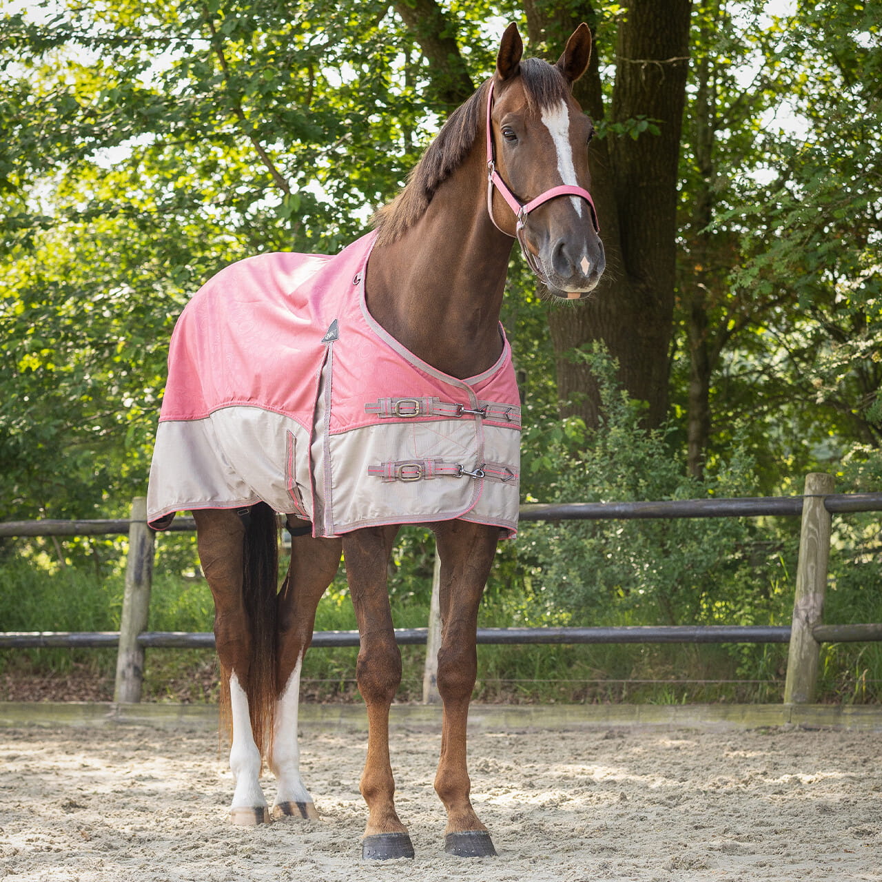 Derka przeciwdeszczowa dla konia QHP Collection w kolorze flamingo – niezawodna ochrona w deszczowe dni