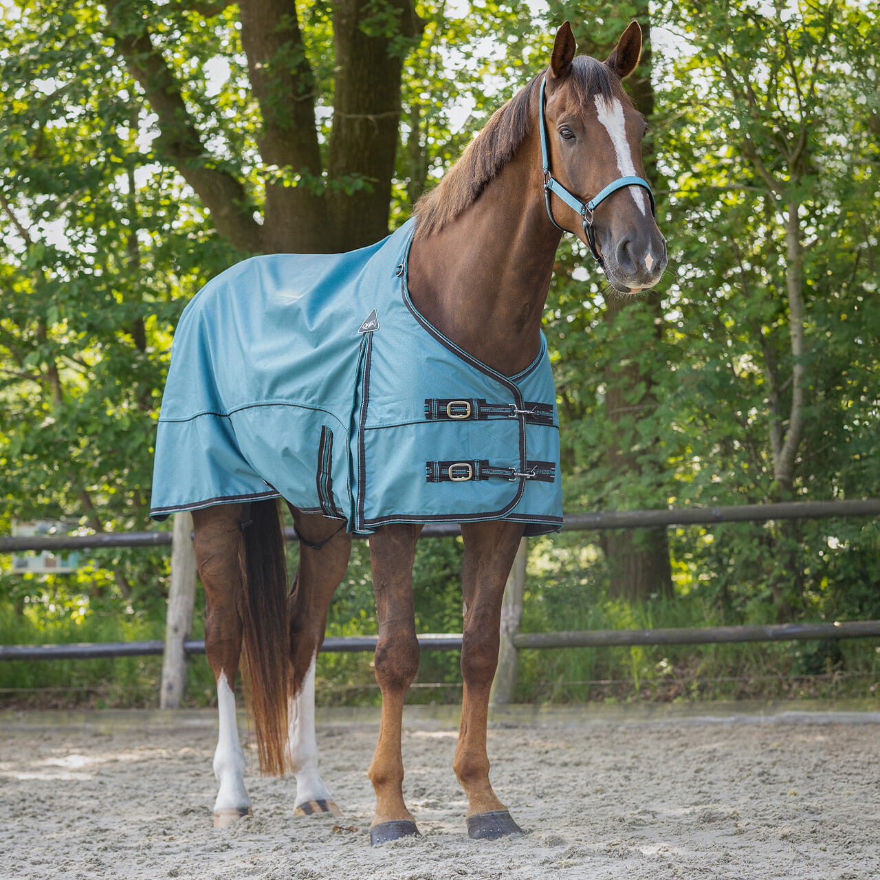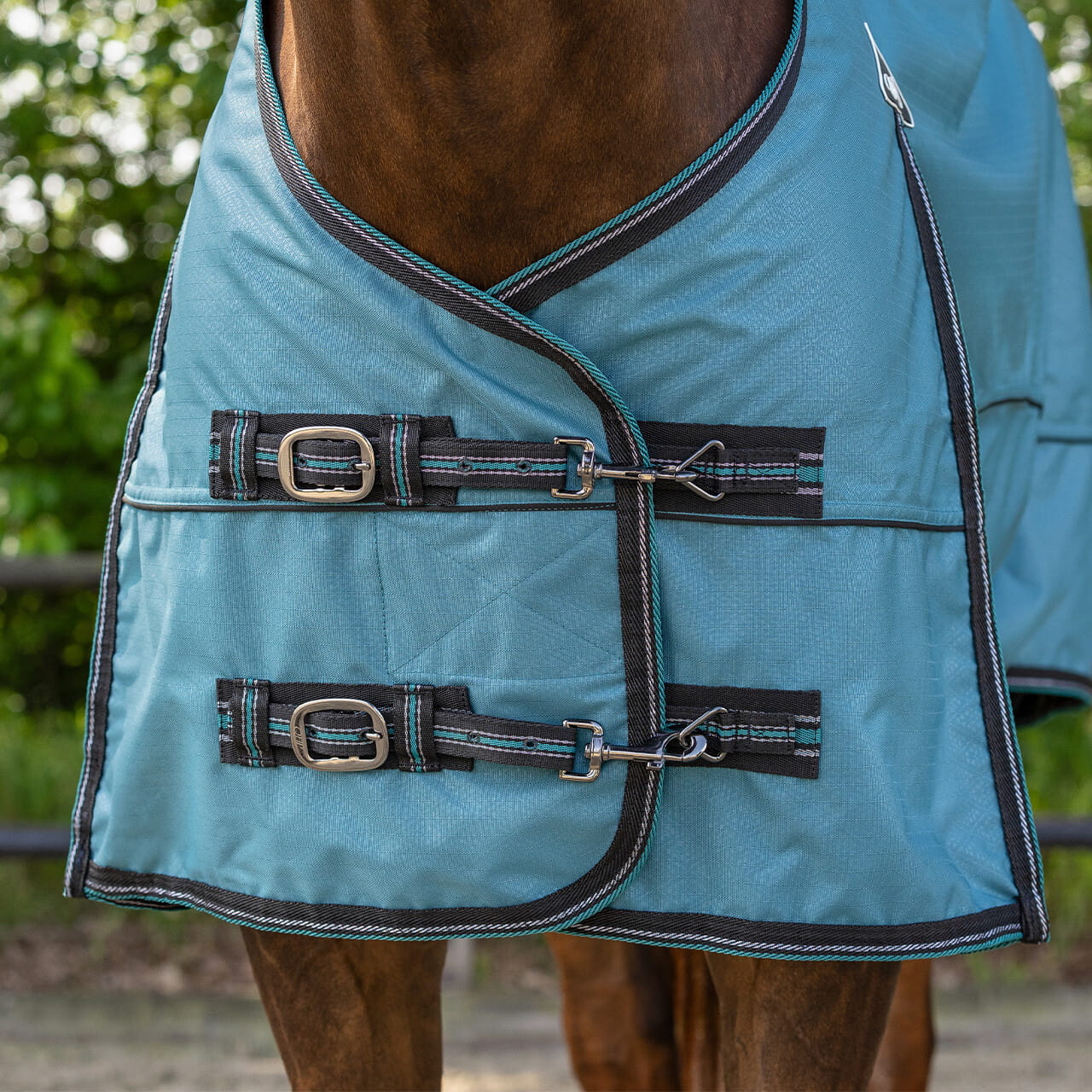 Lekka derka padokowa z polarem QHP Collection to funkcjonalna derka zapewniająca nie tylko wodoodporność i oddychalność, ale także lekkie ocieplenie dzięki podszyciu z polaru. Wykonana z wytrzymałej tkaniny 600D turnout o parametrach 3000/3000, doskonale sprawdza się w chłodniejsze, wilgotne dni.