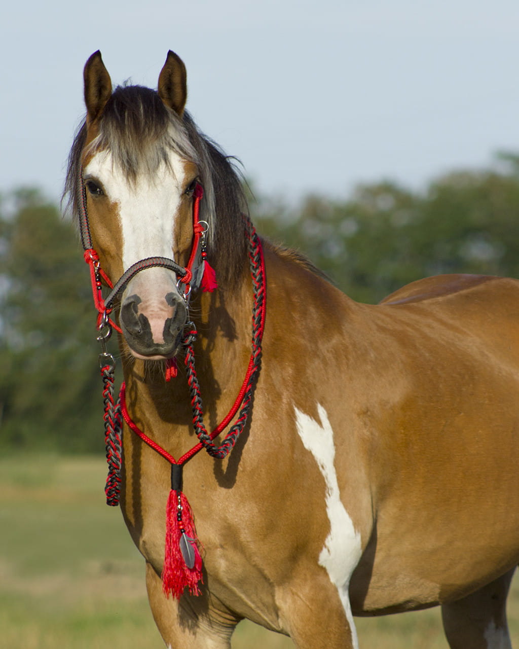 - Kantar sznurkowy wykonany z liny o grubości 10 mm: Solidny i dobrze dopasowany, zapewniający wygodę dla konia.