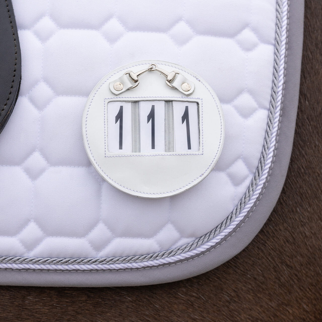 Numer startowy jeździecki trzycyfrowy QHP Ricki w kolorze białym - styl i funkcjonalność na zawodach jeździeckich