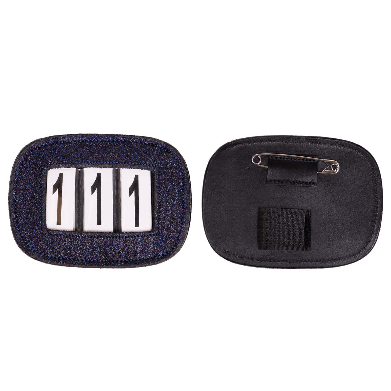 Delikatne brokatowe zdobienie nadaje subtelny połysk, który pięknie prezentuje się na czapraku lub ogłowiu, a co najważniejsze – nie pyli się i nie osypuje. Numer startowy jest wyposażony w wymienne cyfry, co pozwala na szybkie i łatwe dopasowanie numeru do każdego startu.