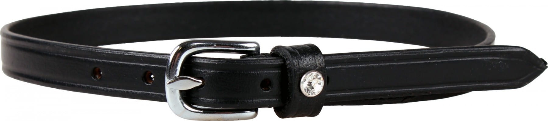 Stylowe paski do ostróg QHP Mercurius zostały wykonane z wysokiej jakości czarnej skóry, co zapewnia ich trwałość oraz elegancki wygląd. Model ozdobiono efektownym, dużym kryształkiem, który nadaje całości wyjątkowego i luksusowego charakteru.