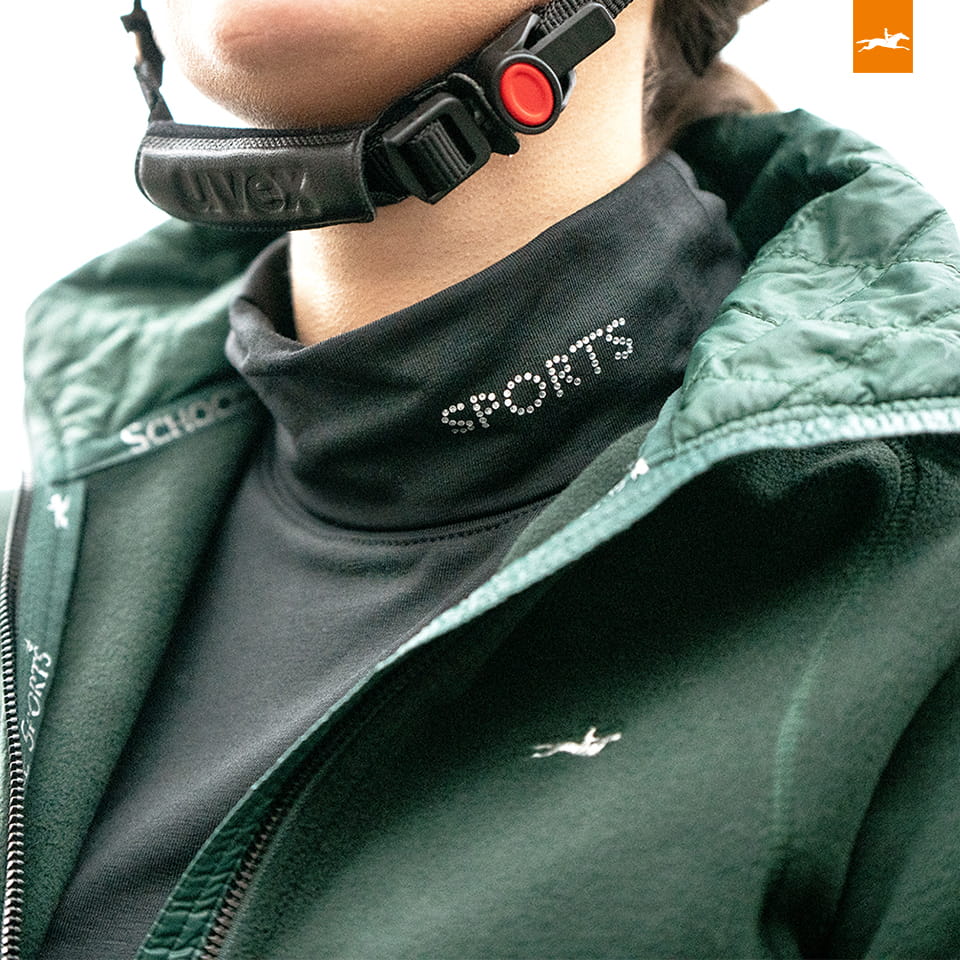 Golf jeździecki Schockemöhle Amber to stylowy i funkcjonalny element garderoby, idealny na chłodniejsze dni. Wykonana z elastycznego, oddychającego materiału, zapewnia pełną swobodę ruchów oraz komfort podczas treningów. Eleganckie wykończenia z cyrkonii na golfie i przodzie dodają jej wyjątkowego charakteru, sprawiając, że świetnie sprawdzi się nie tylko podczas jazdy konnej, ale także w codziennych stylizacjach.