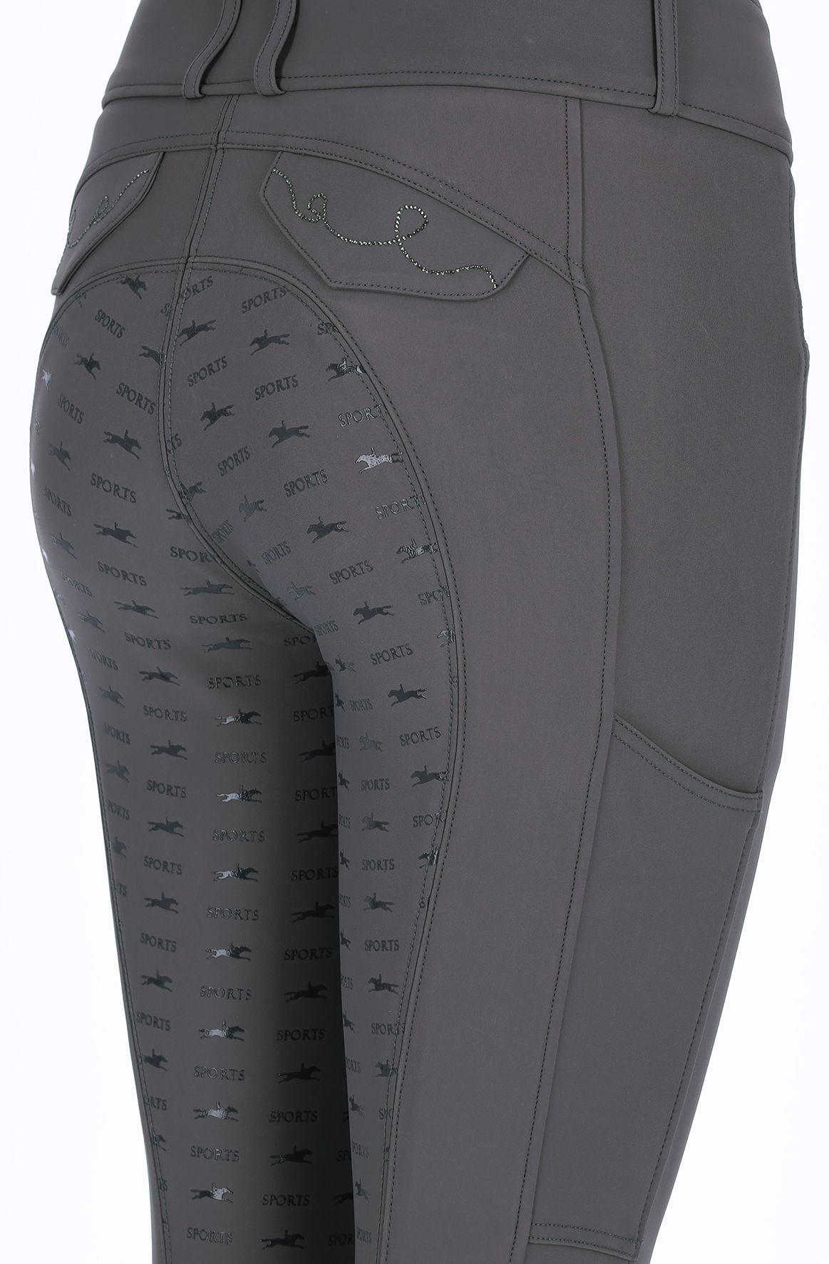 - Ozdobny motyw logo ze strasu – bryczesy z kryształkami dodają charakteru