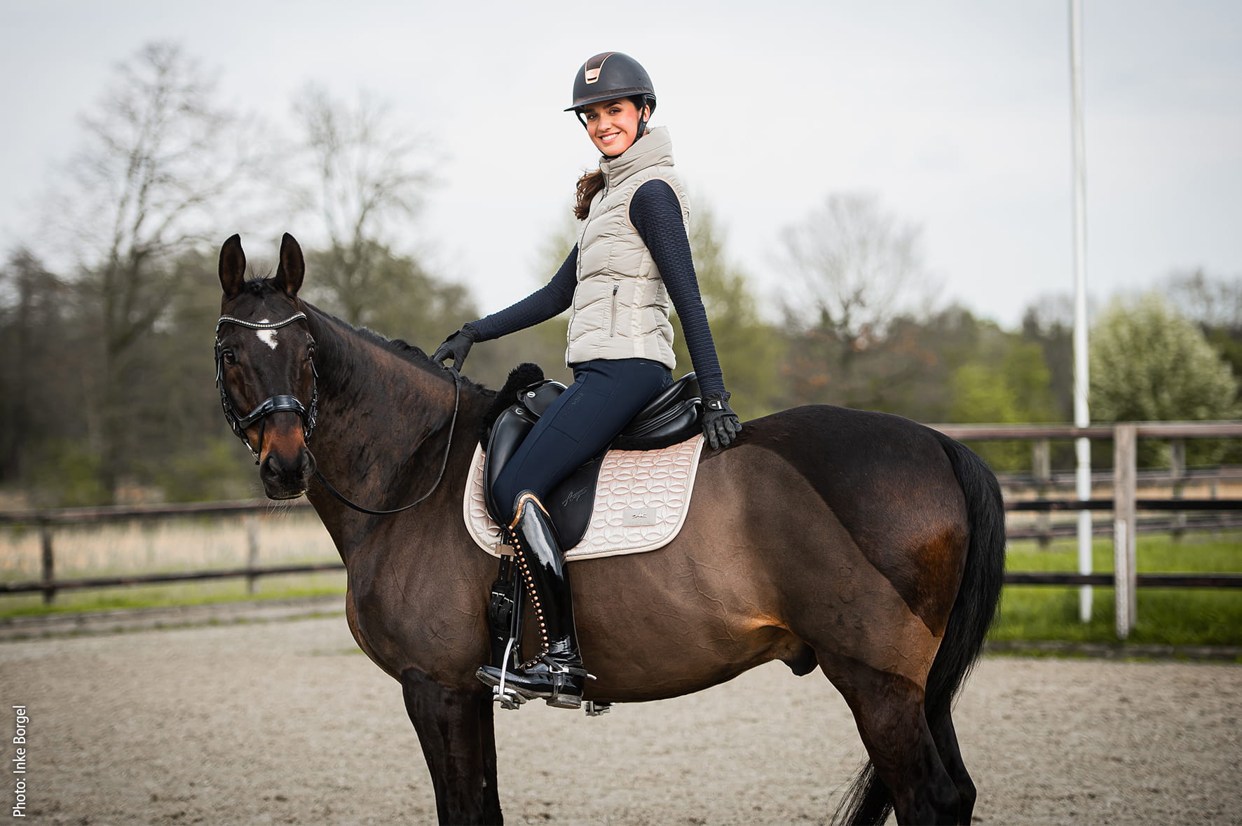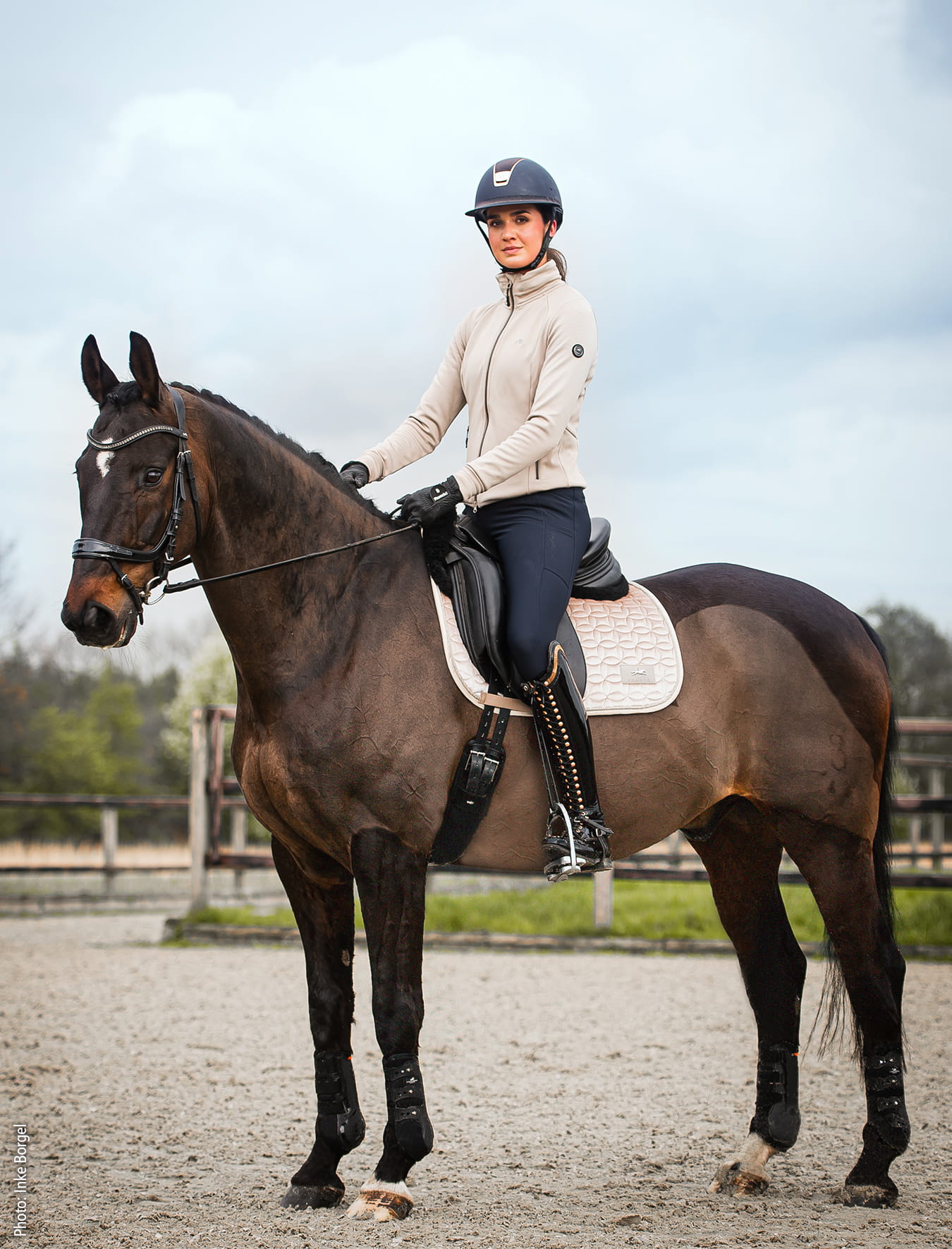 - Prestiżowe wykończenie: Gumowa naszywka z logo Schockemöhle i metalowym konikiem świadczy o wysokiej jakości wykonania i dbałości o detale.