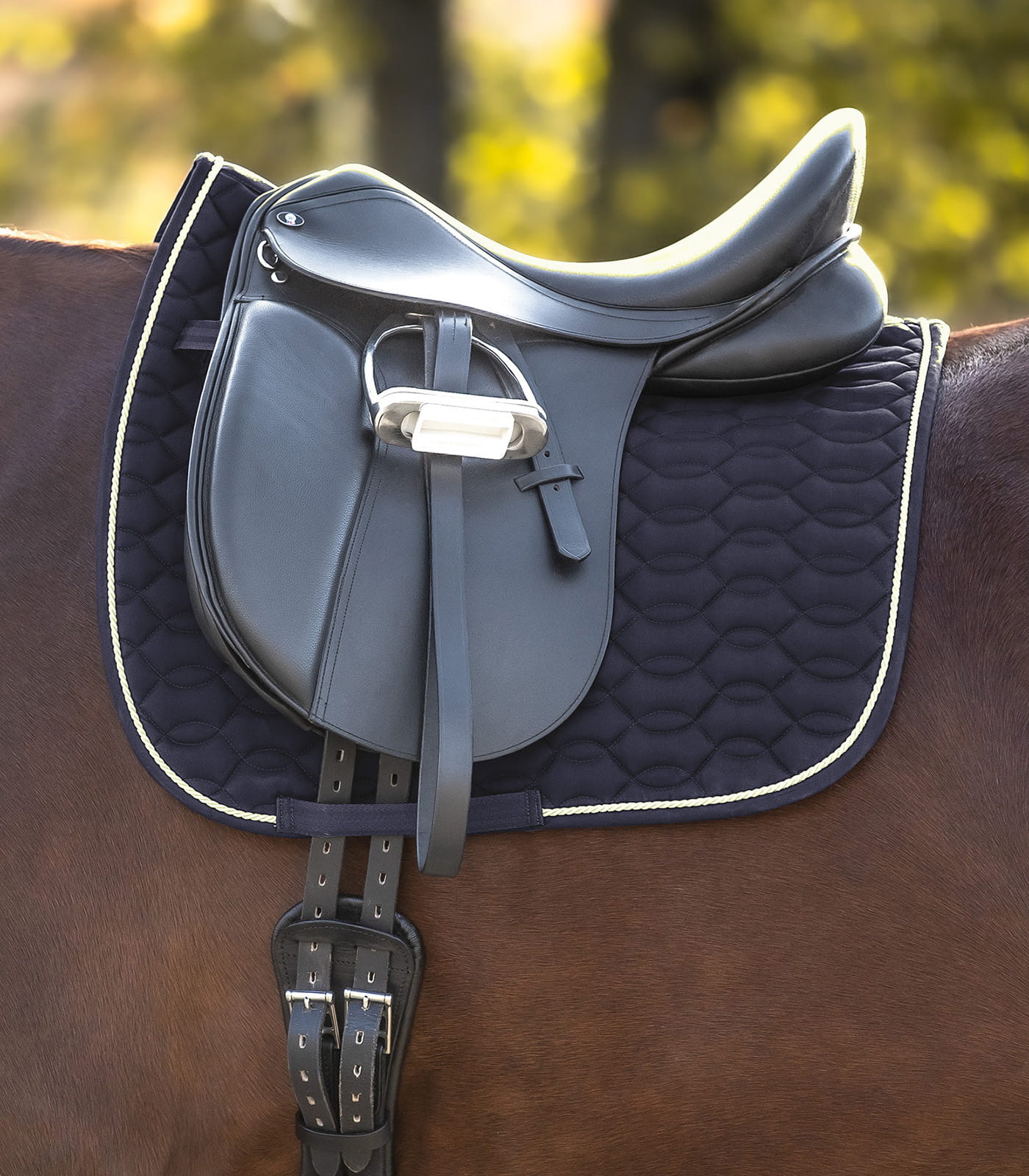 - Doskonała amortyzacja – wypełnienie pianką o grubości 15 mm zapewnia świetną amortyzację, chroniąc grzbiet konia przed nadmiernym naciskiem siodła.