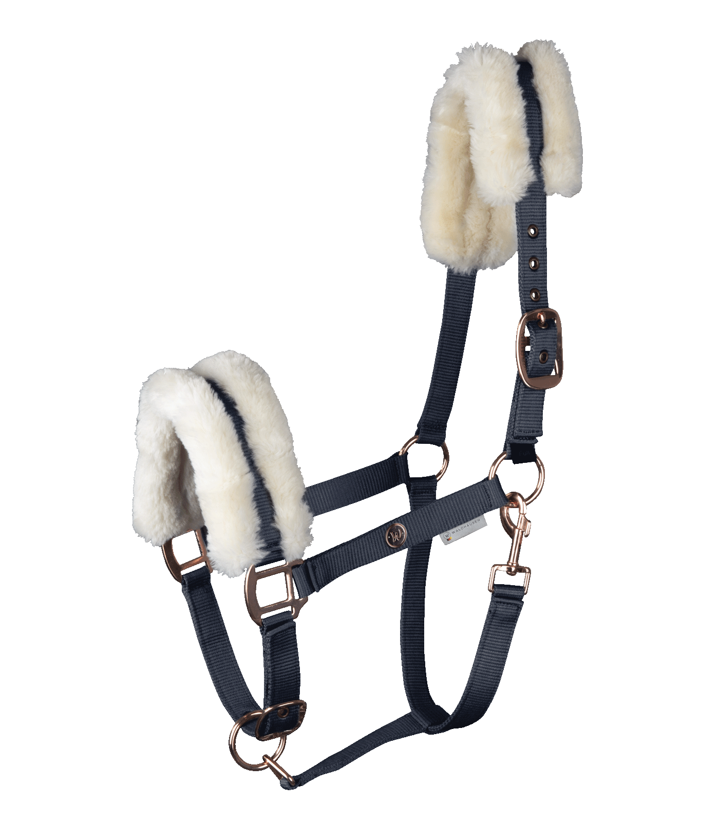 - Miękkie podszycie z futerka syntetycznego – na nachrapniku i pasku potylicznym, dla maksymalnego komfortu i ochrony przed otarciami.