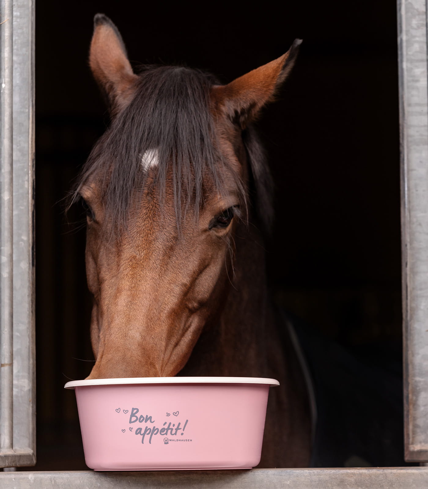 Miska dla konia z pokrywką 5l Waldhausen w kolorze pink - bezpieczne przechowywanie paszy