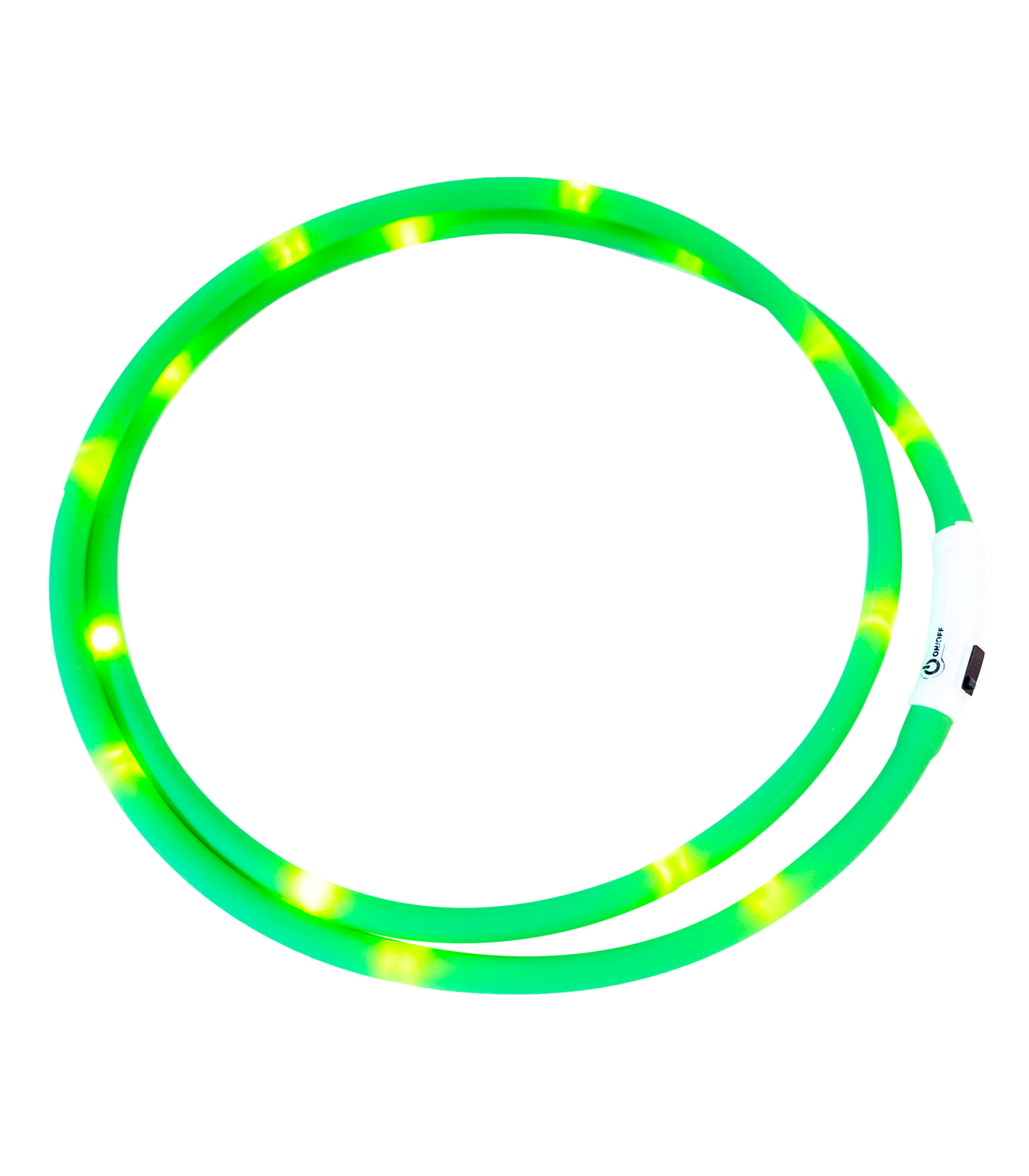 - Elastyczny silikon – obroża z diodami dla konia łatwo dopasowuje się do szyi, można ją dociąć do pożądanej długości, maksymalna długość: 150 cm.