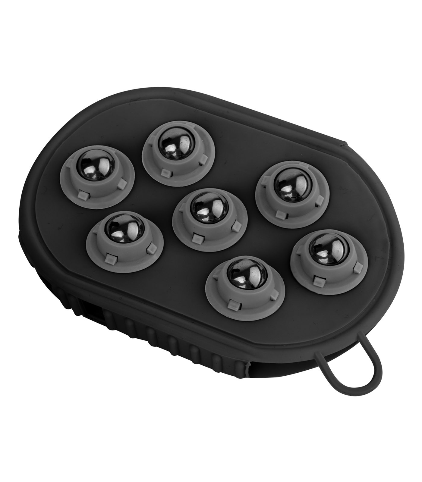 - Podwójna rękawica do masażu: jedna strona z gumowymi wypustkami, które skutecznie usuwają brud, luźną sierść oraz kurz, a także delikatnie masują mięśnie. Druga strona wyposażona w kulki masujące – idealna do głębszego masażu relaksującego i poprawiającego krążenie.