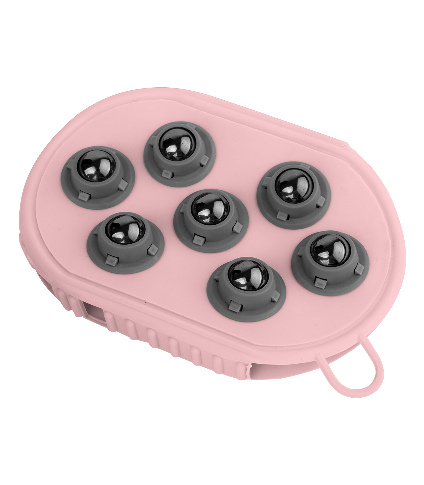 - Podwójna rękawica do masażu: jedna strona z gumowymi wypustkami, które skutecznie usuwają brud, luźną sierść oraz kurz, a także delikatnie masują mięśnie. Druga strona wyposażona w kulki masujące – idealna do głębszego masażu relaksującego i poprawiającego krążenie.