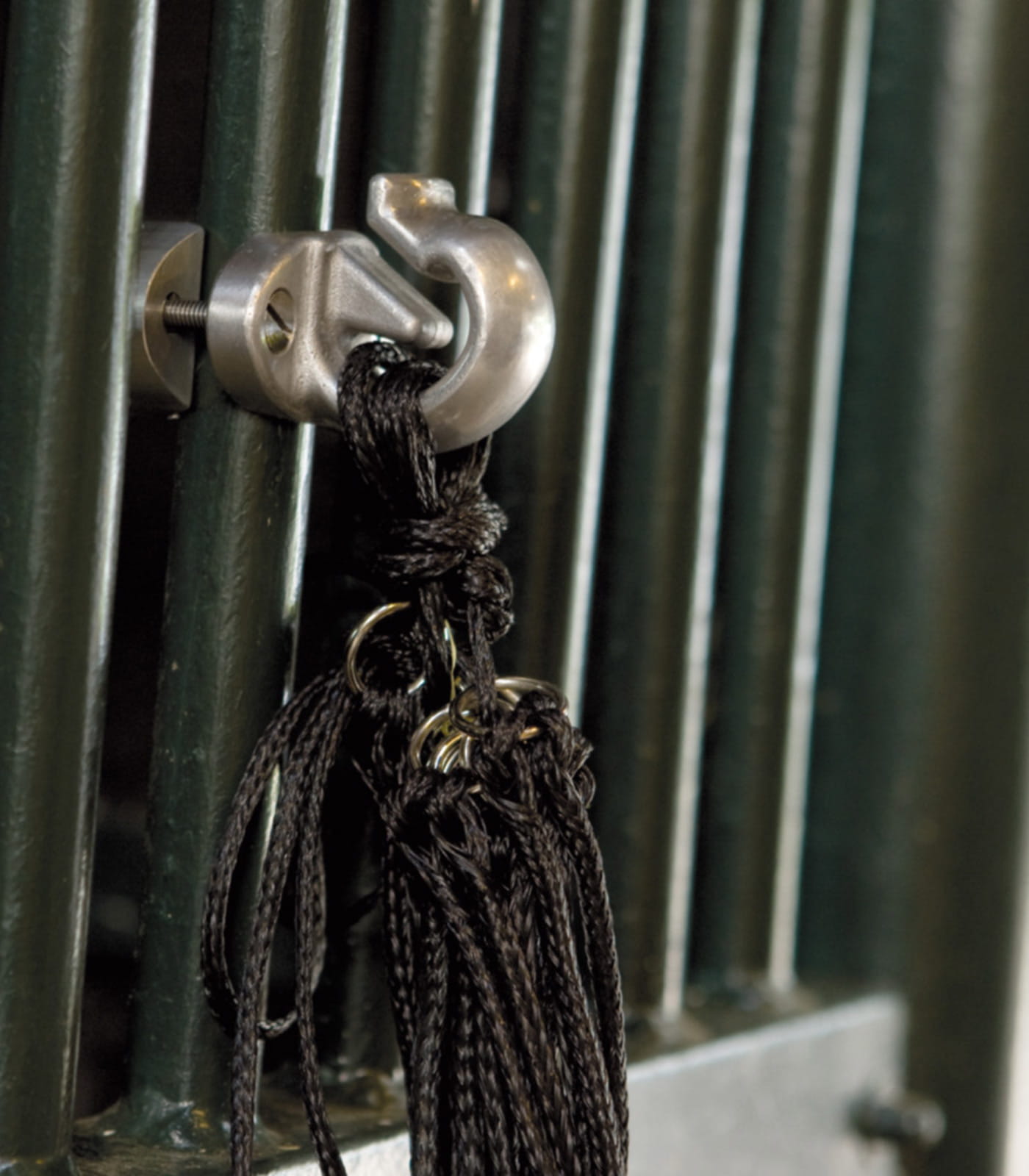 - Wszechstronność – uchwyt sprawdzi się do zawieszania siatek z sianem, lizawek, zabawek oraz innych akcesoriów zarówno w boksie, na padoku, jak i w przyczepie transportowej