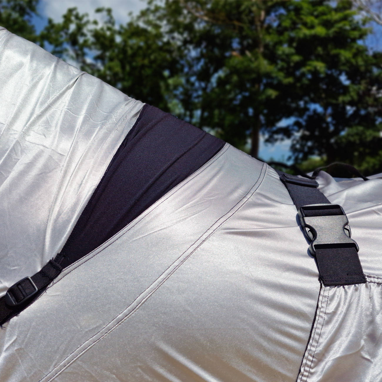 - Pasy na tylne nogi – stabilizują derkę, zapobiegając jej przesuwaniu.