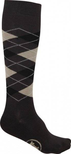 Podkolanówki jeździeckie York Karo w kolorze brązowo-czarnym – skarpety do jazdy konnej w romby