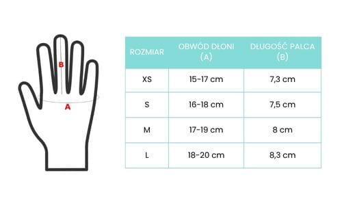 - Wierzch dłoni / wewnętrzna strona dłoni: 60% poliuretan, 40% poliamid