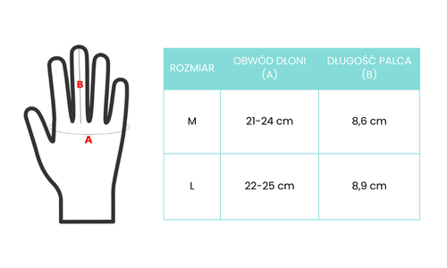 - Górna część rękawiczek: 100% poliester – lekki i wygodny materiał, który zapewnia komfort użytkowania.