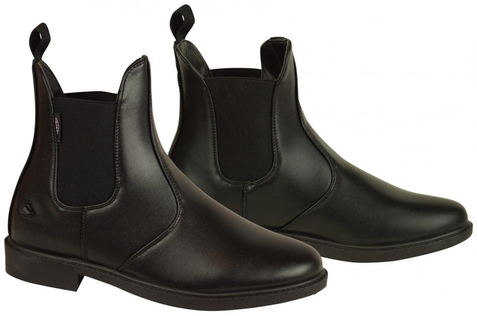 Klasyczne sztyblety jeździeckie wykonane z materiału doskonale imitującego skórę.